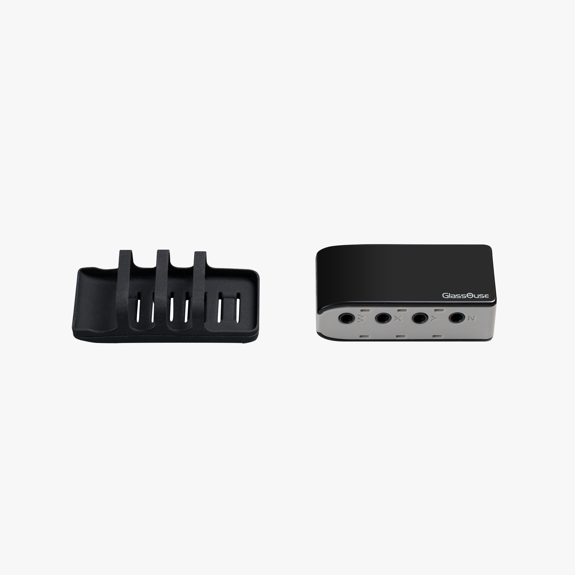 - Place the GlassOuse PRO/Link into the silicone cover, ensuring the three silicone strips do not block the W, X, Y, or Z ports to allow seamless connection with G-Switches.