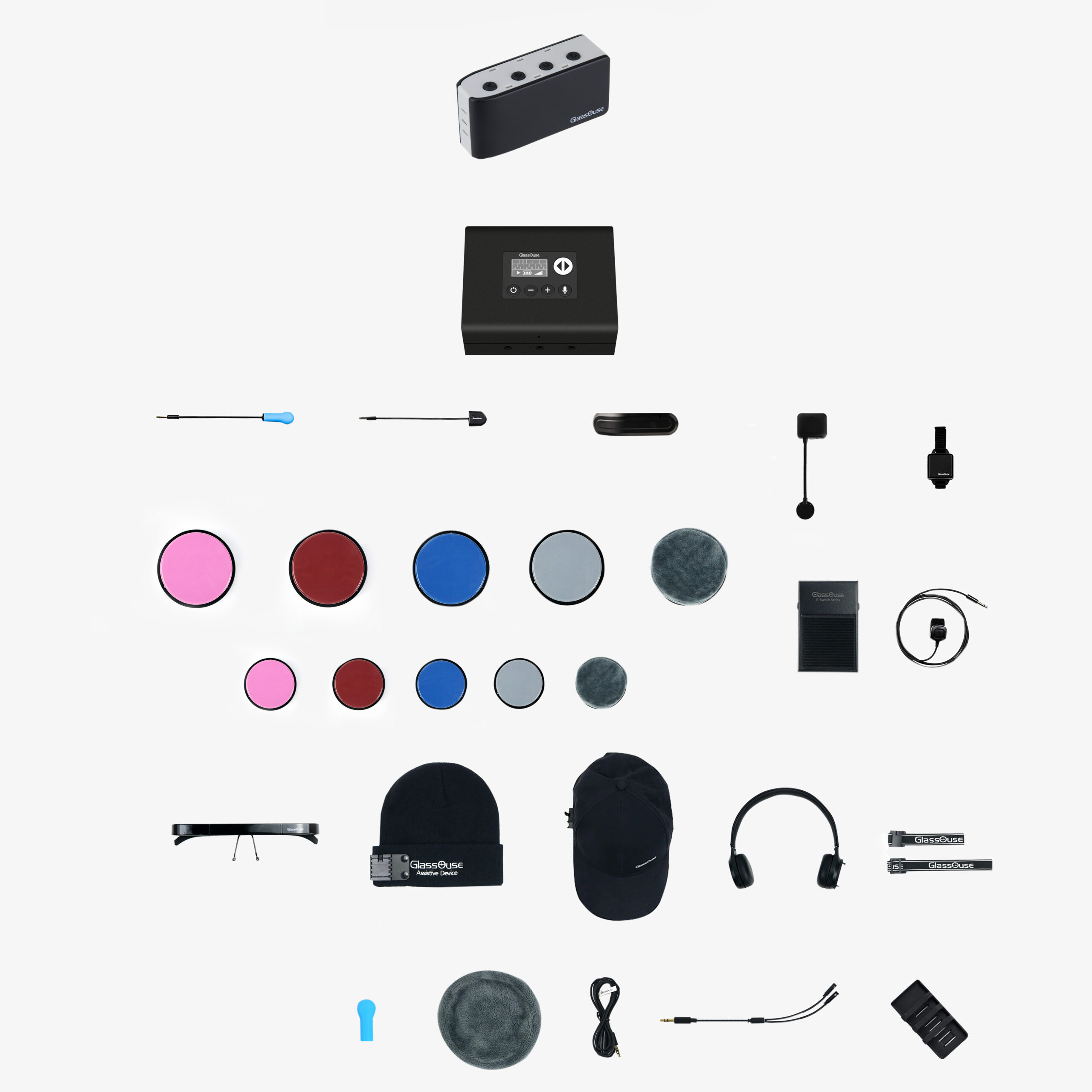 Order all, save cost! Full set of GlassOuse PRO, G-Switch Series, and G-Wear with all accessories. Ideal for schools, rehab centers, and hospitals to add all items to their libraries. Each item comes with its box, accessories, and user manuals.